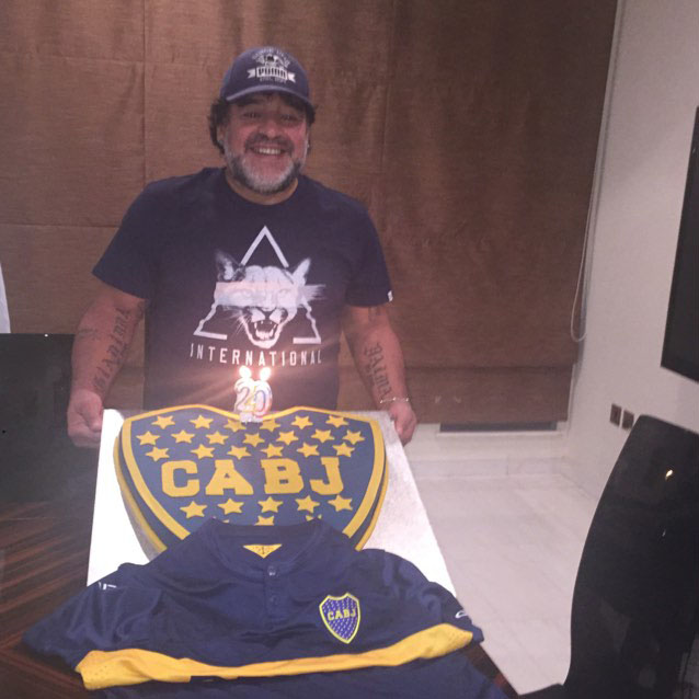 In September 1995, Diego Maradona agreed to return to his beloved Boca Juniors after 13 years of absence and now, 20 years later, he decided to remember that special moment of his career with a celebration in the privacy of his home. Of course there was a Boca Juniors cake and a t-shirt to accompany the nice moment.